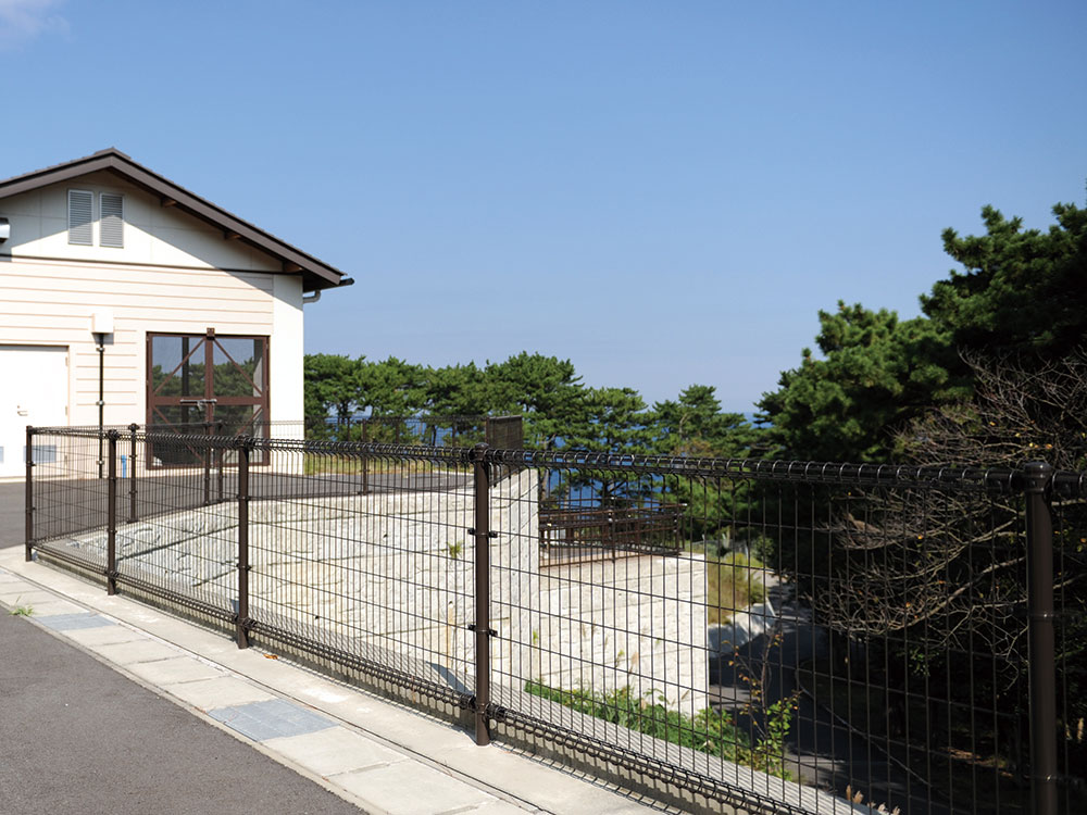 | 仕様 | ◇支柱:φ50.8×2.3亜鉛・アルミ・マグネシウム合金メッキ ポリエステル樹脂静電紛体塗装仕上 ◇パネル:φ3.6・4.5 高張力亜鉛メッキ線 アクリル酸変性ポリエチレン流動浸漬塗装仕上 |