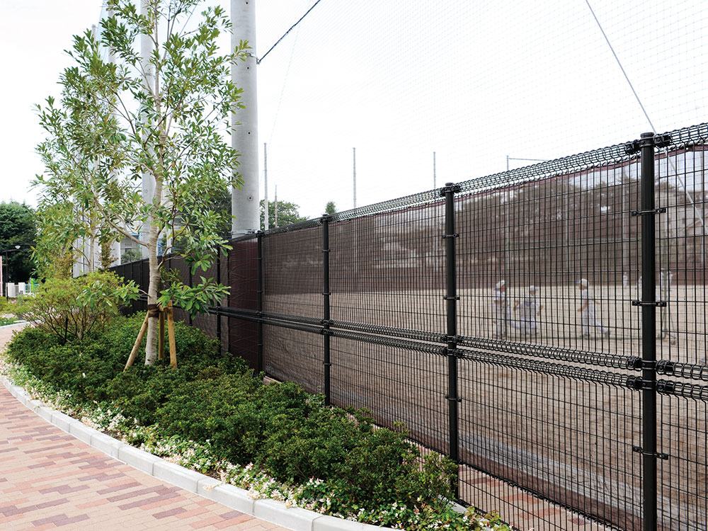 | 仕様 | ◇支柱:φ50.8×2.3亜鉛・アルミ・マグネシウム合金メッキ ポリエステル樹脂静電紛体塗装仕上 ◇パネル:φ3.6・4.5 高張力亜鉛メッキ線 アクリル酸変性ポリエチレン流動浸漬塗装仕上 |