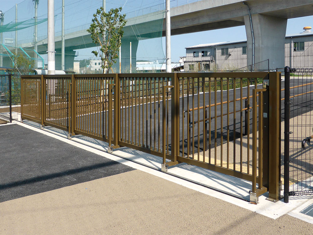 | 仕様 | ◇外枠かまち:□-75×45×2.3電気亜鉛メッキ処理後焼付塗装仕上 ◇格子:□-19×19×1.6電気亜鉛メッキ処理後焼付塗装仕上 ◇戸当柱:□-100×100×2.3電気亜鉛メッキ処理後焼付塗装仕上 ◇レール:9キロレール |