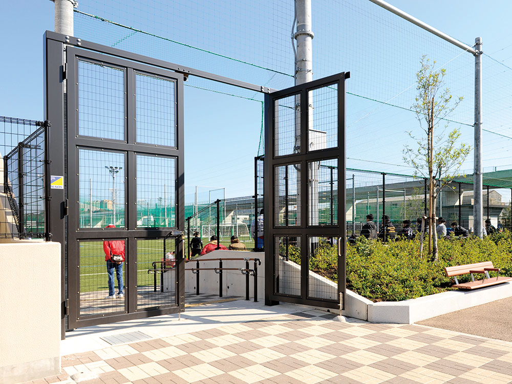 | 仕様 | ◇外枠かまち:□-100×50×2.3電気亜鉛メッキ処理後焼付塗装仕上 ◇縦格子:□-30×20×1.6電気亜鉛メッキ処理後焼付塗装仕上 ◇吊元柱:□-100×100×3.2電気亜鉛メッキ処理後焼付塗装仕上 |