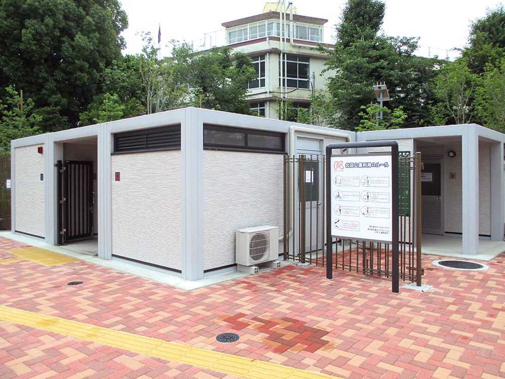 | 仕様 | ◇本体:RC造 ◇屋根:防水塗装仕上 ◇柱・梁部:塗装仕上(複層仕上塗材) ◇壁:外装 軽量鉄骨下地+サイディング塗装貼 内装 軽量鉄骨下地+サイディング塗装貼 ◇床:100角ノンスリップタイル貼 ◇トイレブース:ペーパーハニカムコア ポリエステル化粧板 ◇シャワーブース:合成樹脂発泡体 FRPカラー板 ◇採光部:アルミ型材+ポリカーボネート ◇換気部:アルミサッシガラリ ◇換気扇:浴室用換気扇 ◇引違い窓:網入りガラス(透明) ◇開き戸:アルミカマチドア ◇ハンガースライド扉:ステンレス板貼り・HL仕上 ◇ピクトサイン:ステンレス150角 耐候性シート ◇外壁灯:LED照明 ◇室内照明:LED照明 ◇非常警報器:警報ランプ付ブザー ◇衛生設備:腰掛式便器(男子×1・女子×2・多目的×1) ◇衛生設備:オストメイト設備×1 小便器×2 大型手洗器×1 手洗器×5 サーモスタットシャワー金具×4 ベビーシート×1 手摺×3 |