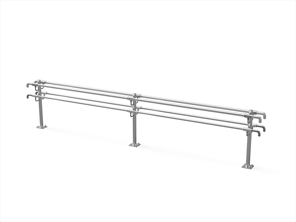 | 仕様 | ◇支柱:φ60.5×2.0 SUSヘアライン仕上 ◇手摺:上段φ42.7×2.0 下段φ34.0×2.0 SUSヘアライン仕上 |
