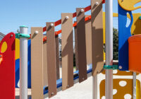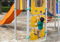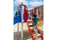 小さな公園に映える配色と安全性にもこだわった複合遊具の新シリーズ。