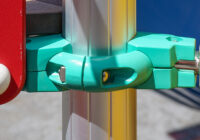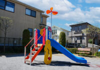 小さな公園に映える配色と安全性にもこだわった複合遊具の新シリーズ。