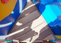 階段やすべり台に加えて、回したり、こまを動かしたりする遊びをコンパクトに詰め込んだ小さな公園にもうれしい遊具です。風で回るプロペラトッパーはオレンジ色の光を地面に映します。