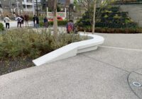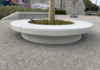 「人研ぎベンチ」は耐久性があり、デザインの自由度が高いことから、公園や学校施設などで広く使われています。