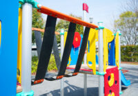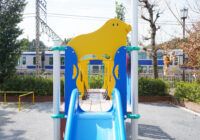 小さな公園に映える配色と安全性にもこだわった複合遊具の新シリーズ。