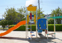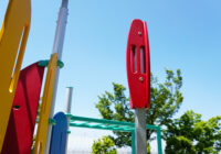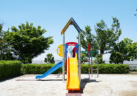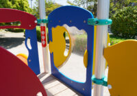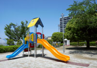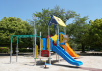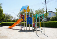 小さな公園に映える配色と安全性にもこだわった複合遊具の新シリーズ。