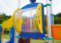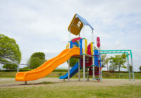 小さな公園に映える配色と安全性にもこだわった複合遊具の新シリーズ。